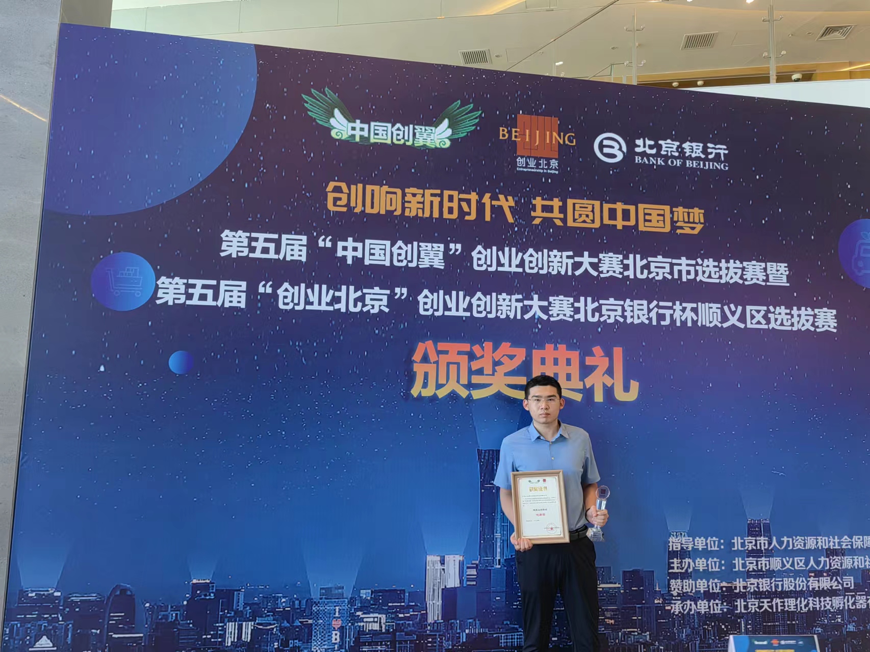 8月15日,第五届“创业北京”创业创新大赛北京银行杯顺义区选拔赛颁奖典礼举行,九叁有方团队荣获服务项目组优秀奖。